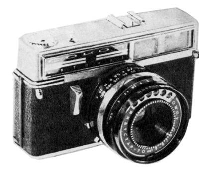 - Der Belichtungsmesser (Fotowiderstand) ist am Objektiv angebracht. Bei freier Blendenwahl (2,8 bis 16) wird die Belichtungszeit
