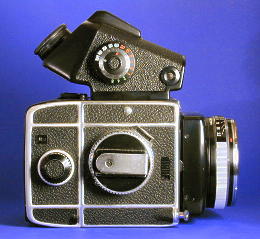 For film back exchange finder must be taken off (dark slide cannot be pushed or pulled otherways).